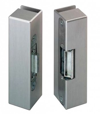 El. otvírač je vybaven adaptérem pro instalaci na celoskleněné bezrámové křídlo o tloušťce 8-10-12mm. (nutno specifikovat při objednání)